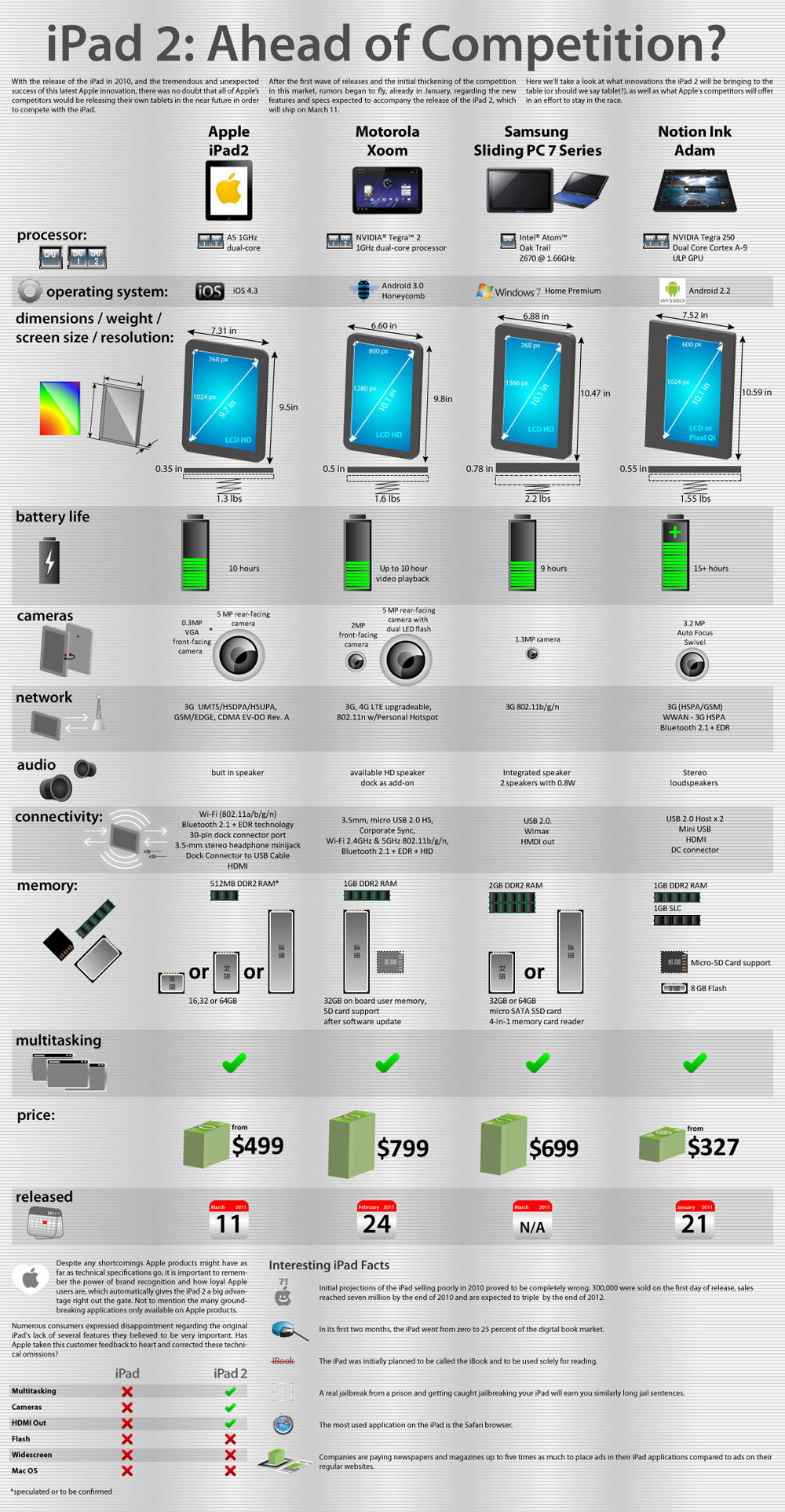 ipad2-specs-c Published March 2, 2011 at 1000 × 1925 in Full iPad2 Specs vs. Competition: Who’s Best? [Infographic] ‹ PREVIOUS --- NEXT › ‹ PREVIOUS --- NEXT › Sharing is Caring: Click to share on Facebook (Opens in new window) Facebook Click to share on X (Opens in new window) X Click to email a link to a friend (Opens in new window) Email More Click to share on Pinterest (Opens in new window) Pinterest Click to share on Mastodon (Opens in new window) Mastodon