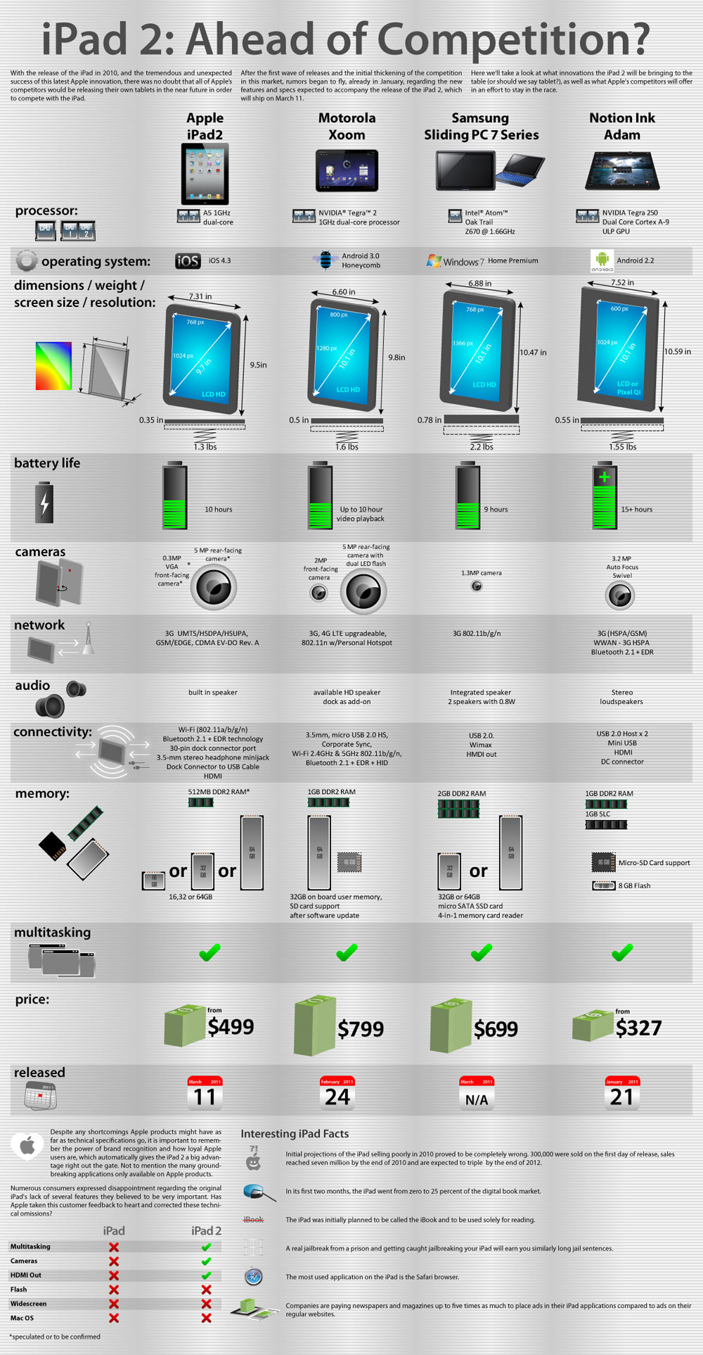 ipad2-specs-e Published March 3, 2011 at 1000 × 1925 in Full iPad2 Specs vs. Competition: Who’s Best? [Infographic] ‹ PREVIOUS --- ‹ PREVIOUS --- Sharing is Caring: Click to share on Facebook (Opens in new window) Facebook Click to share on X (Opens in new window) X Click to email a link to a friend (Opens in new window) Email More Click to share on Pinterest (Opens in new window) Pinterest Click to share on Mastodon (Opens in new window) Mastodon
