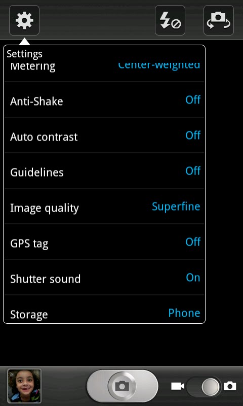 Some of the many, many camera setting to adjust. The camera here is really remarkable for a phone. If we’d had this when MySpace wasn’t a desert town we probably could have skipped the duckface, heavily-eyelinered business and just all had nice, well-shot profile pics. (A girl can dream.)