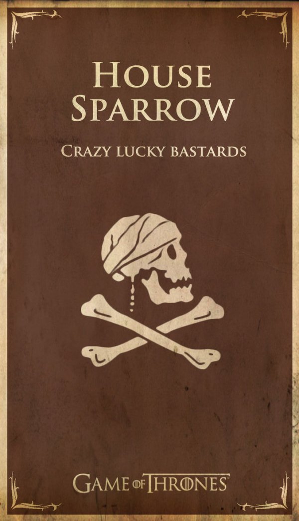 House Sparrow Published December 21, 2012 at 600 × 1045 in More ‘Game of Thrones’-Inspired House Sigils [Picture Gallery] ‹ PREVIOUS --- NEXT › ‹ PREVIOUS --- NEXT › Sharing is Caring: Click to share on Facebook (Opens in new window) Facebook Click to share on X (Opens in new window) X Click to email a link to a friend (Opens in new window) Email More Click to share on Pinterest (Opens in new window) Pinterest Click to share on Mastodon (Opens in new window) Mastodon