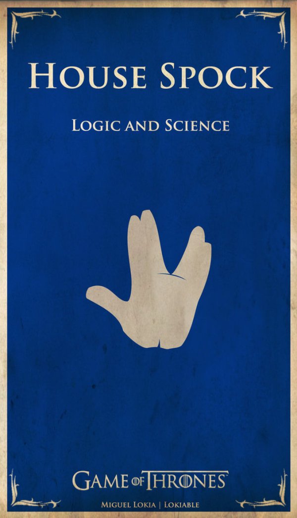 House Spock Published December 21, 2012 at 600 × 1045 in More ‘Game of Thrones’-Inspired House Sigils [Picture Gallery] ‹ PREVIOUS --- NEXT › ‹ PREVIOUS --- NEXT › Sharing is Caring: Click to share on Facebook (Opens in new window) Facebook Click to share on X (Opens in new window) X Click to email a link to a friend (Opens in new window) Email More Click to share on Pinterest (Opens in new window) Pinterest Click to share on Mastodon (Opens in new window) Mastodon