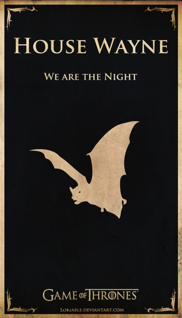 House Wayne Published December 21, 2012 at 600 × 1045 in More ‘Game of Thrones’-Inspired House Sigils [Picture Gallery] --- NEXT › --- NEXT › Sharing is Caring: Click to share on Facebook (Opens in new window) Facebook Click to share on X (Opens in new window) X Click to email a link to a friend (Opens in new window) Email More Click to share on Pinterest (Opens in new window) Pinterest Click to share on Mastodon (Opens in new window) Mastodon