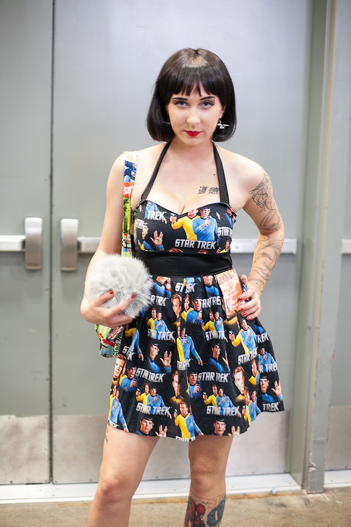 Lady Dressed in a Retro Star Trek Dress + Tribble – San Diego Comic-Con (SDCC) 2013 Published July 18, 2013 at 700 × 1050 in San Diego Comic-Con (SDCC) 2013: Preview Night in Pictures [Gallery] ‹ PREVIOUS --- NEXT › ‹ PREVIOUS --- NEXT › Sharing is Caring: Click to share on Facebook (Opens in new window) Facebook Click to share on X (Opens in new window) X Click to email a link to a friend (Opens in new window) Email More Click to share on Pinterest (Opens in new window) Pinterest Click to share on Mastodon (Opens in new window) Mastodon
